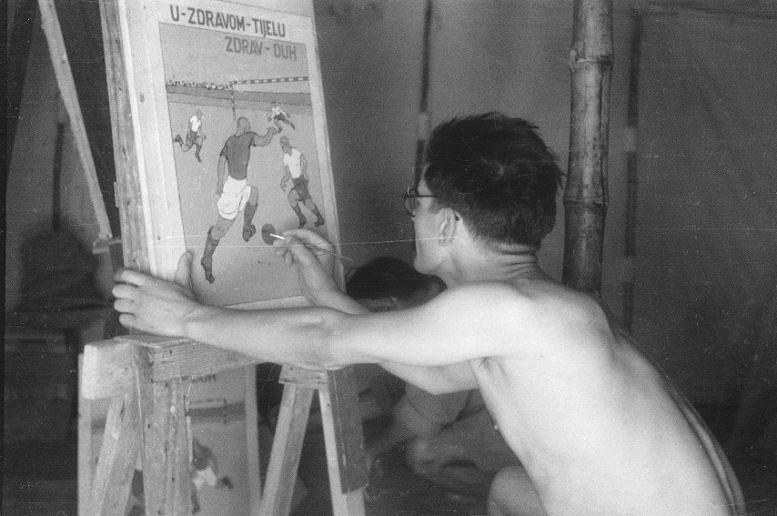 Likovni umjetnici i pedagozi Ante Kostović, Ante Šitić, Rudolf Bunk, Živko Kljaković i Kuzma Vitaljić osnovali su Školu za umjetni obrt i Pionirsku radionicu, gdje su zajedno s polaznicima oblikovali vizualni identitet logora. Fotografsku radionicu je vodio splitski fotograf Ljubomir Garbin. Učenici i polaznici radionica, mnogi bez prethodnog umjetničkog obrazovanja, sudjelovali su u stvaranju natpisa, plakata, ilustracija, zidnih novina i dekoracija. U tom je procesu prevladavao duh kolektivnog rada i zajedničke svrhe: autorstvo je rijetko isticano, a dizajnerska su rješenja nastajala kroz zajedničko promišljanje, improvizaciju i dijeljenje znanja. Tek se manji broj radova može atribuirati pojedincima, dok je većina nastala kao rezultat anonimne, ali izrazito žive zajedničke prakse.