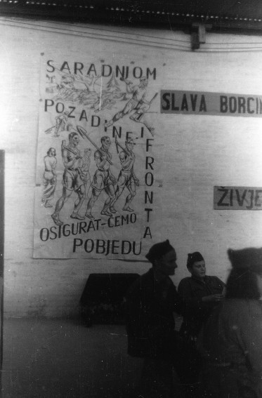 Partizanske su vlasti u okviru Centralnog odbora zbjega osnovale pet odsjeka. U kontekstu dizajna bila su aktivna čak dva: Propagandni i Kulturno-informativni odjel, koji je pak bio podijeljen u četiri sekcije: glazba, dramska, likovna umjetnost i arhitektura i fotografija. Tu su djelovale kiparske, slikarske, pismoslikarske i fotografske radionice, koje su postale središta kulturne i vizualne proizvodnje. U sekciji za likovnu umjetnost djelovali su trinaest slikara, kipara i arhitekta.