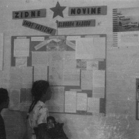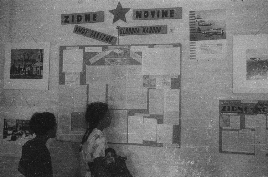 Zidne novine, postavljene na ploče u javnim prostorima logora, bile su kolaži tiskanih tekstova, crteža i fotografija. Takve su zidne novine služile kao zajednički prostor izraza i komunikacije, svojevrsni vizualni medij zajednice, gdje su se svakodnevno ispisivale i dopunjavale vijesti, obavijesti, stihovi i crteži.